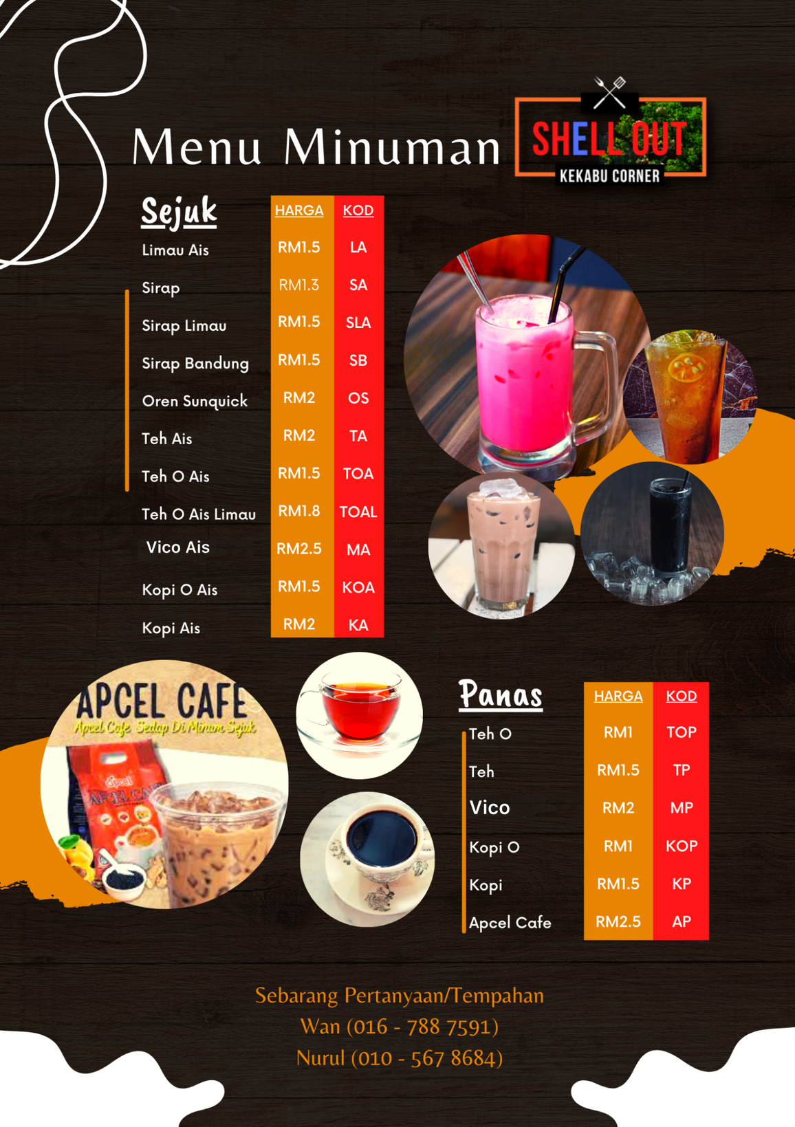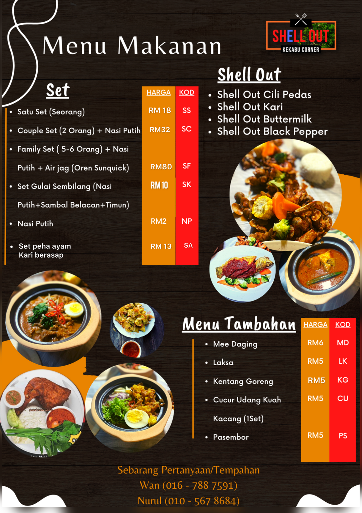 Selain shellout ,terdapat juga menu-menu lain seperti kari semilang clypot,mee daging,laksa ,set peha ayam,cucur udang ,pasembur dan lain-lain .